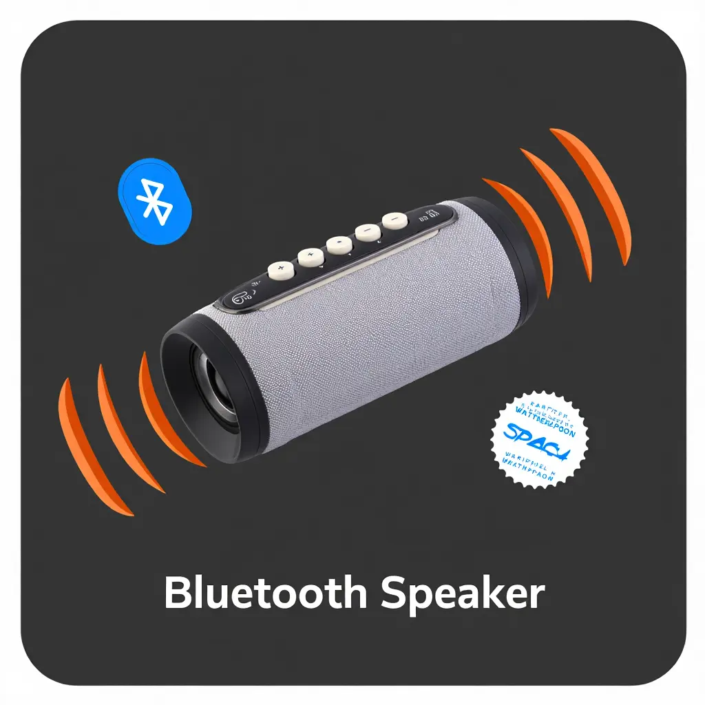 Compact speaker with clear sound and 6-hour battery life.